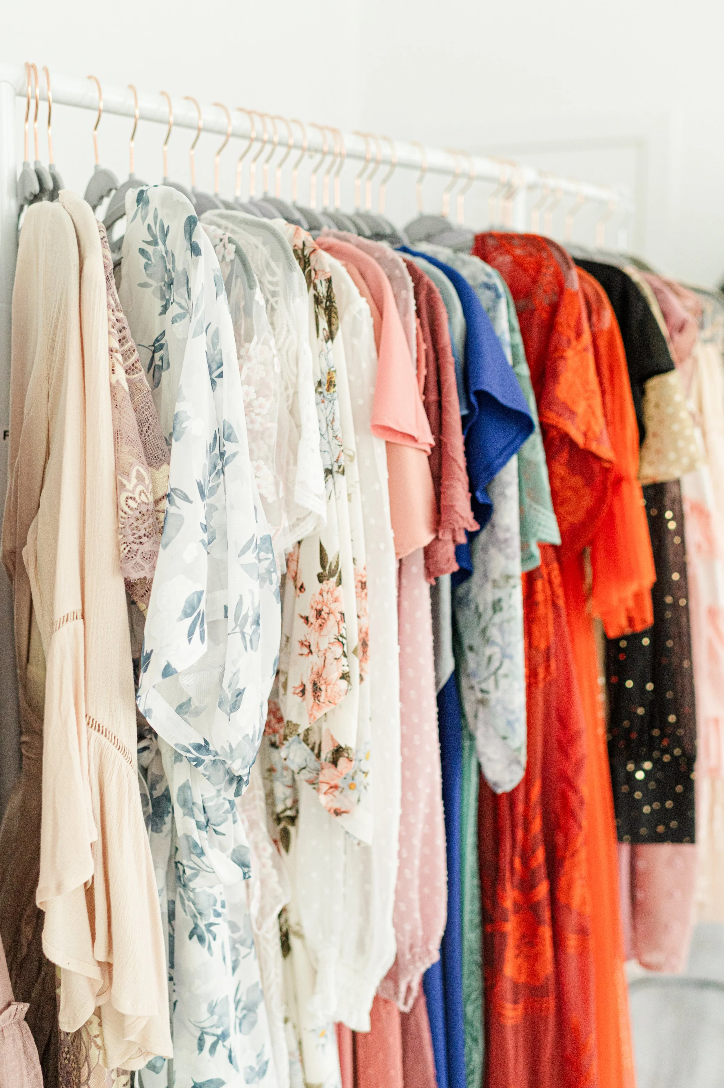 I have a variety of gowns in different colors and sizes. I also have girls’ dresses for older sisters, and I even have some boy sweaters. We look through all of this and plan your outfits at your consultation.